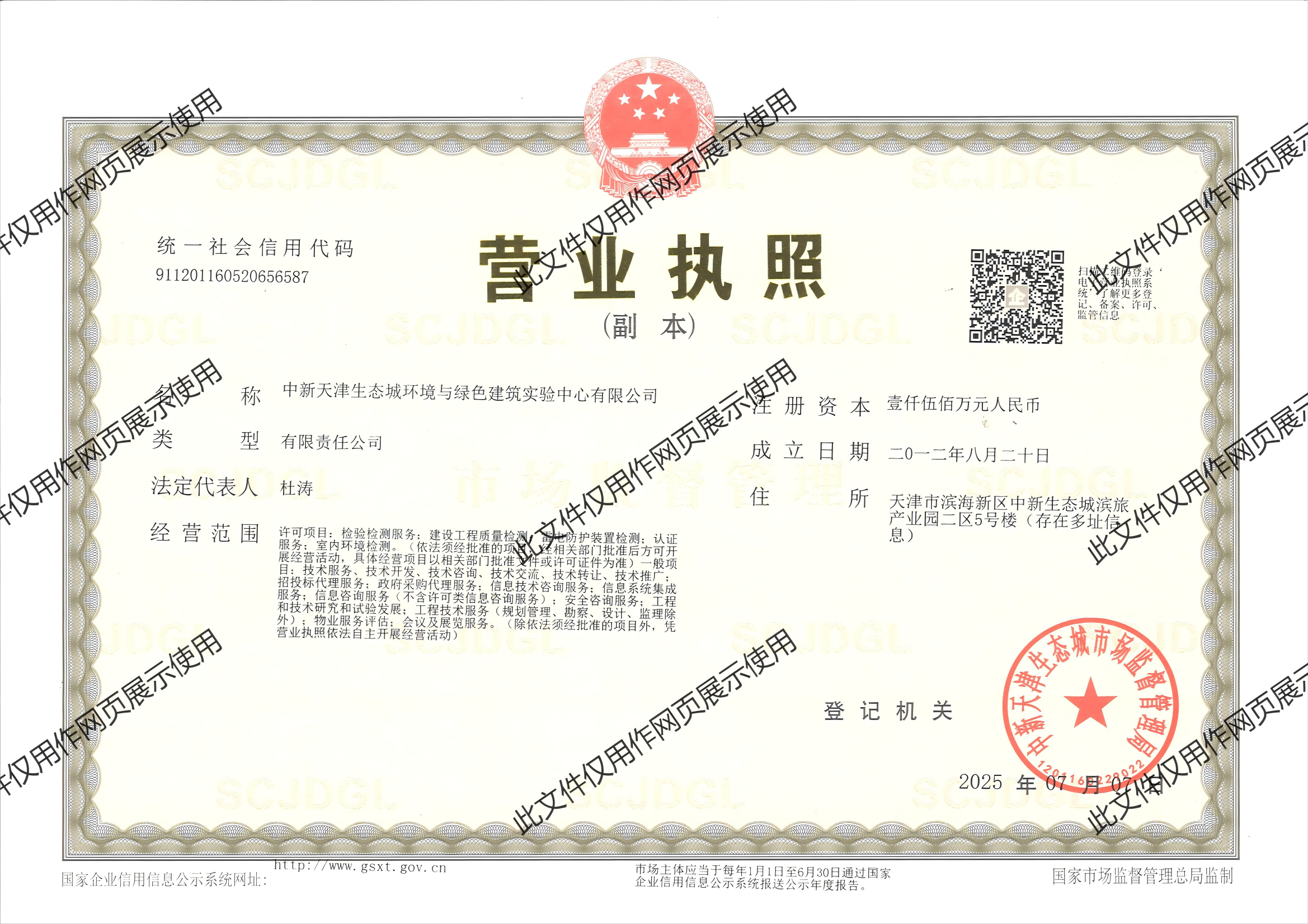 點擊查詢中新天津生態(tài)城環(huán)境與綠色建筑實驗中心有限公司是天津生態(tài)城綠色建筑研究院有限公司與天津住宅科學(xué)研究院有限公司共同出資組建,注冊資金為1500萬元。